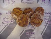 Roggenbrötchen: 50 % Weizenteig (s. Art.-Nr. 1 "Kleingebäck" Weißbrötchen) 50 % Roggenteig Brötchen. Fördert die Verdauung und die Kautätigkeit. Jeder Belag oder Aufstrich passt dazu. Elberfelder: 70 % Weizenteig (s. Art.-Nr. 1 "Kleingebäck" Weißbrötchen) 30 % Spezialmischung: Roggenmehl, Weizenmehl, Sojaschalen, Weizenspeisekleie, Quellmehl, Molkenpulver, jodiertes Speisesalz, Säuerungsmittel, Milchsäure. Eckige Form. Oberfläche ist mit Haferflocken bestreut. Ballaststoffreiches Brötchen. Fördert die Verdauung und die Kautätigkeit. Jeder Belag oder Aufstrich passt dazu. Kornhausbrötchen: 50 % Weizenteig (s. Art.-Nr. 1 "Kleingebäck" Weißbrötchen) 50 % Spezialmischung: Sonnenblumenkerne, Leinsamen, Sesam, Sojaschrot, Roggenmalzkörner, getr. Natursauerteig, Dinkelschrot, Weizenvollkorn, Roggenvollkornschrot, jodiertes Speisesalz, Mehlbehandlungsmittel Ascorbinsäure. Dreieckige Form. Oberfläche mit Leinsamen, Sesam und Mohn bestreut. Kerniges Brötchen, vielseitig zu belegen. Weltmeisterbrötchen: 70 % Weizenteig (s.Art.-Nr. 1 "Kleingebäck" Weißbrötchen) 30 % Spezialmischung: Sonnenblumenkerne, Sojaschrot, Roggenmalzkörner, getr. Natursauerteig, Dinkelschrot, Weizenmehl, Roggenvollkornschrot, jodiertes Speisesalz, Mehlbehandlungsmittel Ascorbinsäure. Eckige Form. Die Oberfläche ist mit Sesam, Leinsamen und Mohn bestreut. Der Boden mit Sonnenblumenkernen. Für Kunden, die ein körniges Brötchen bevorzugen, eine gute Empfehlung. Dazu schmecken vielerlei Aufschnitte und Aufstriche. Auch mit Rohkost belegt, schmeckt es sehr gut. Sonnenblumenkernbrötchen: 70 % Weizenteig (s. Art.-Nr. 1 "Kleingebäck" Weißbrötchen) 30 % Spezialmischung: Sonnenblumenkerne, Sojaschrot, Roggenmalzkörner, getr. Natursauerteig, Dinkelschrot, Weizenmehl, Roggenvollkornschrot, jodiertes Speisesalz, Mehlbehandlungsmittel Ascorbinsäure. Eckige Form. Die Oberfläche ist mit Sonnenblumenkernen bestreut. Angenehm nussiger Geschmack. Dinkelbrötchen: 100 % Dinkel: (Dinkelmehl, Dinkelschrot, Dinkelflocken) Speisesalz, Mehlbehandlungsmittel Ascorbinsäure. Eckige Brötchenform. Herzhaft, kräftiger Geschmack. Fördert die Kautätigkeit. Dekor mit Käse und Kürbiskernen Dinkelflocken Tigerbrötchen: 70 % Weizenteig (s. Art.-Nr. 1 "Kleingebäck" Weißbrötchen) 30 % Körnermischung: Roggenvollkornmehl, Hirsemehl, Roggenvollkornschrot, Gerstensauermalzschrot, Sonnenblumenkerne, Haferflocken, Roggenflocken, Leinsamen, jodiertes Speisesalz, Sojaschrot, Röstmalz . Eckige Brötchenform. Oberfläche mit einer Reismehlkruste. Kernig, kräftiger Geschmack. Dazu eignet sich herzhafter Belag wie z. B. Mett, Käse, Schinken, usw. Kornknacker: 50 % Weizenteig (s. Art.-Nr. 1 "Kleingebäck" Weißbrötchen) 50 % Kornknacker-Mischung: Weizenmehl, Roggenvollkornschrot, Sojaschrot, Roggenvollkornquellmehl, jodiertes Speisesalz, Gewürze, Weizenspeisekleie, Leinsamen, Sonnenblumenkerne, Sojaschalen, Sesam. Malzmehl, Emulgator Lecithin, Molkenpulver, Säuerungsmittel Milch-säure. Längliche Brötchenform. Die Oberfläche ist 3mal längs eingeschnitten und mit Mohn, Sesam und Leinsamen bestreut. Ballaststoffreiches Brötchen. Verdauung wird angeregt. Prinz-Ludwig Brötchen: 70 % Weizenteig (s. Art.-Nr. 1 "Kleingebäck" Weißbrötchen) 30 % Roggenflocken, Weizenschrot, Dinkelmehl. Eckige Brötchenform mit Krsutygold-Dekor Rustico-Brötchen: 80 % Weizenmehl 30 % Spezialmischung: Roggen- und Haferflocken, Sonnenblumenkerne. Längliche Form. Die Oberfläche ist mit Mehl bestreut. Leicht nussiger Geschmack. Sehr vielseitig zu belegen. Ballaststoffreich. Kornburger-Brötchen: 70 % Weizenteig (s. Art.-Nr. 1 "Kleingebäck" Weißbrötchen) 30 % Spezialmischung: Roggenmehl, Weizenmehl, Sojaschalen, Weizenspeisekleie, Quellmehl, Molkenpulver, jodiertes Speisesalz, Säuerungsmittel, Milchsäure. Runde Form. Oberfläche ist mit Haferflocken und Sesam bestreut. Ballaststoffreiches Brötchen. Fördert die Verdauung und die Kautätigkeit. Jeder Belag oder Aufstrich passt dazu. |